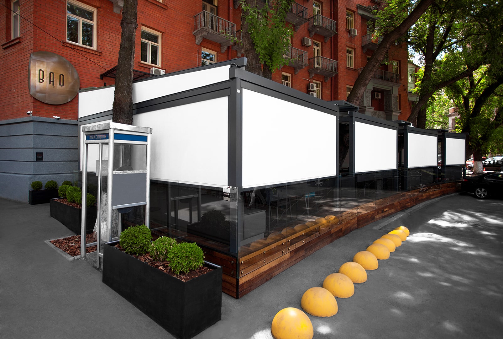 Розробляємо комплексні сонцезахисні рішення для терас та фасадів готелів, ресторанів, приватних будинків.