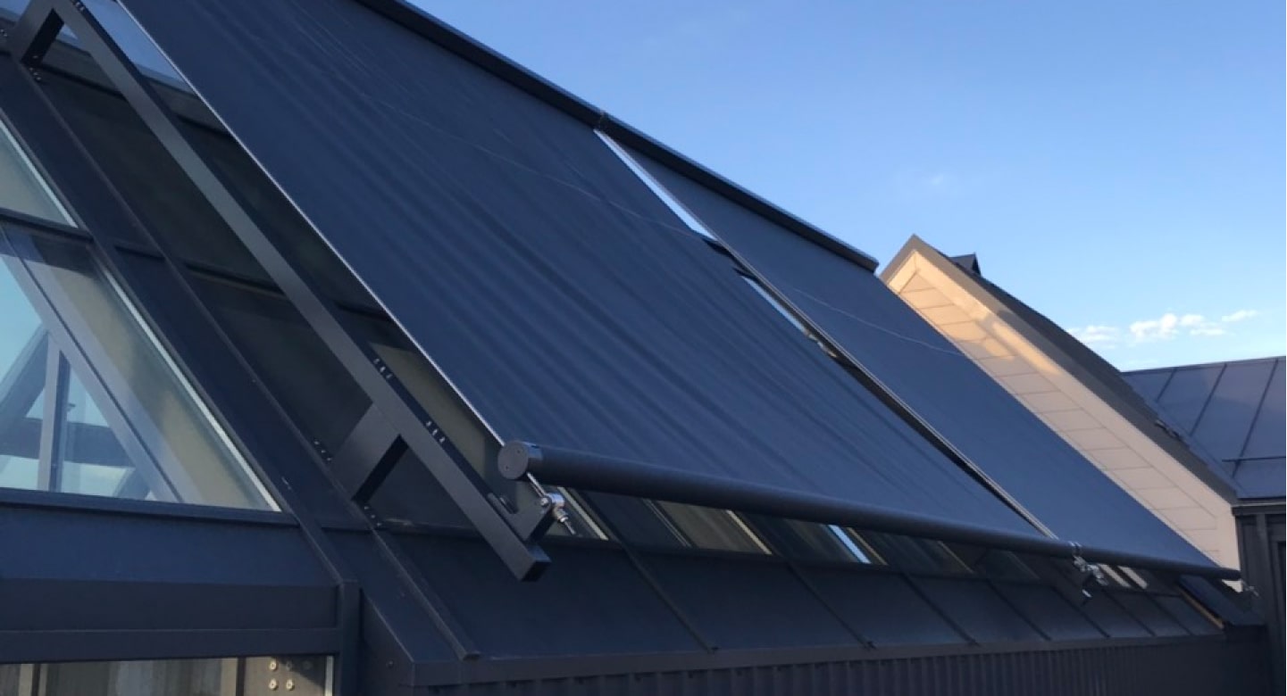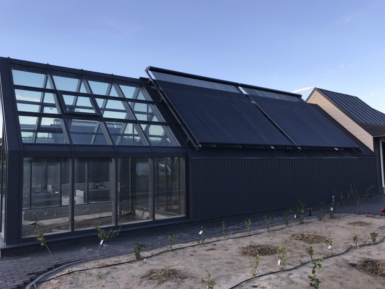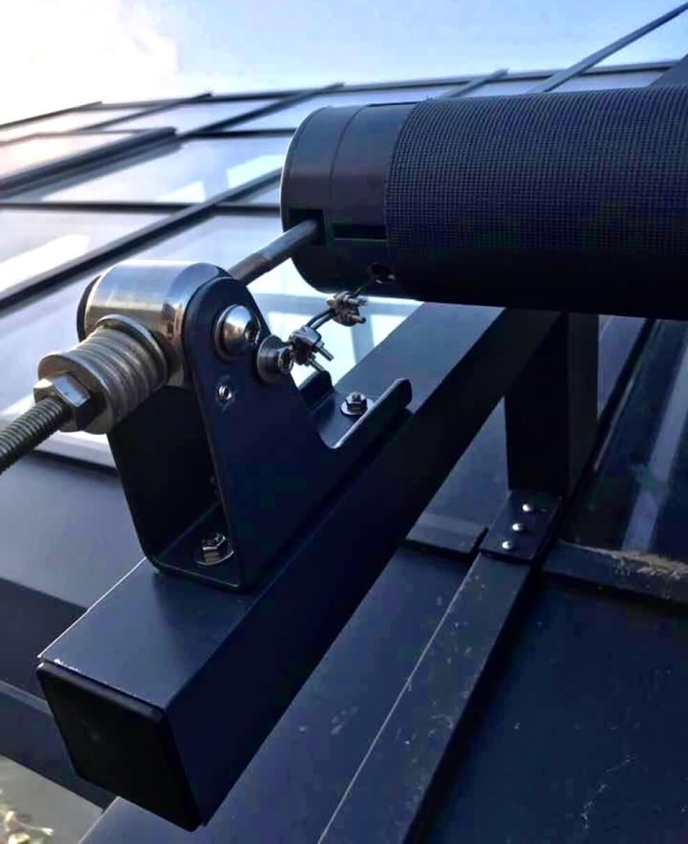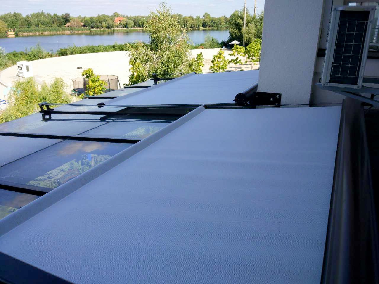 Вітростійка система з алюмінію та нержавіючої сталі для захисту простору від сонця, дощу та бокового вітру.