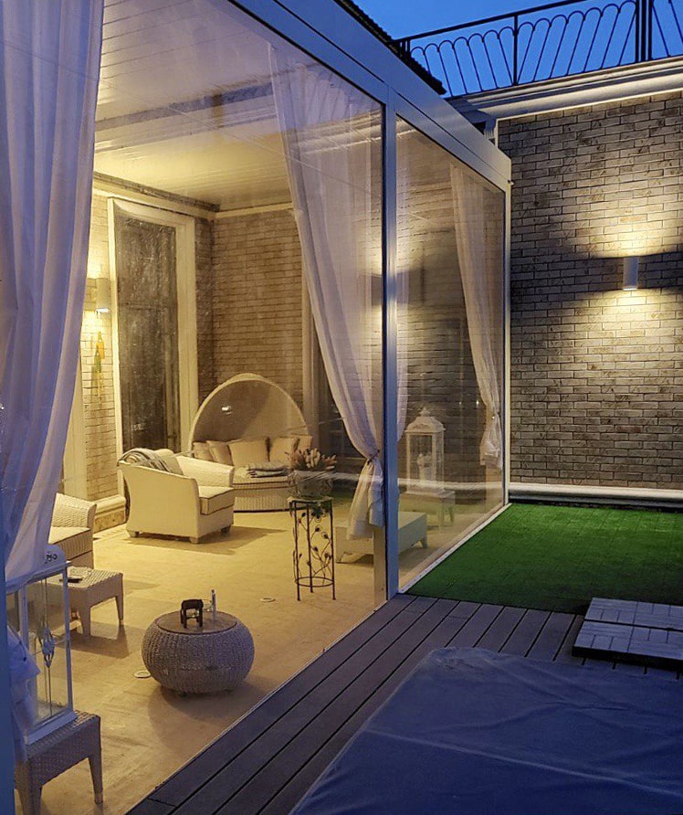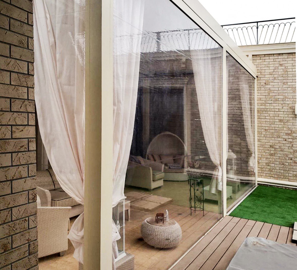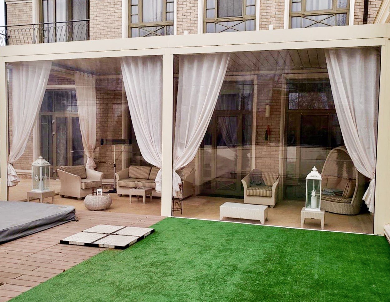 Залежно від типу системи та тканини використовується для закриття бічних прорізів терас, скління зимових садів, оранжерей, веранд, альтанок, лоджій, віконних отворів та фасадів будівель.